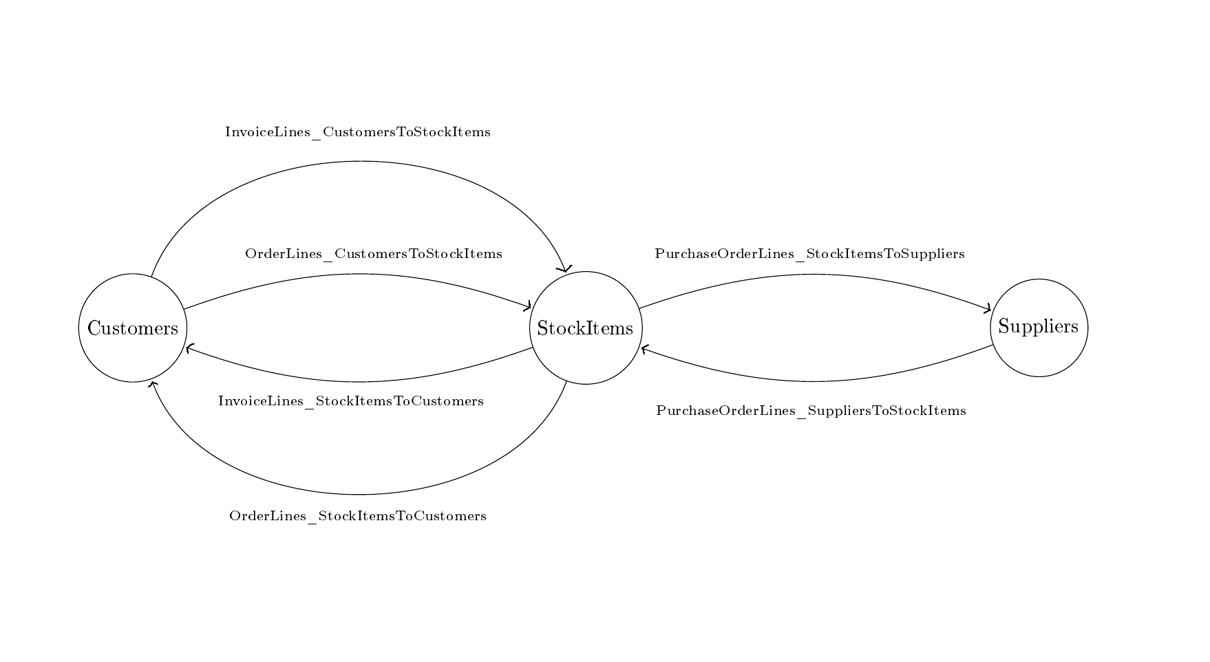 The first step will consist in creating graph tables. This is the purpose of create_graph_tables.sql. create_graph_tables.sql creates node equivalent of Sales.Customers, Warehouse.StockItems and Purchasing.Suppliers. On top, it creates six edge tables between these node tables. Please keep in mind that all graph edges are oriented, meaning that an edge table from Node Table A to Node Table B is not equivalent to an edge table from Node Table B to Node Table A. The second step is to populate the graph tables that you have just created. This is the purpose of populate_graph_tables.sql.